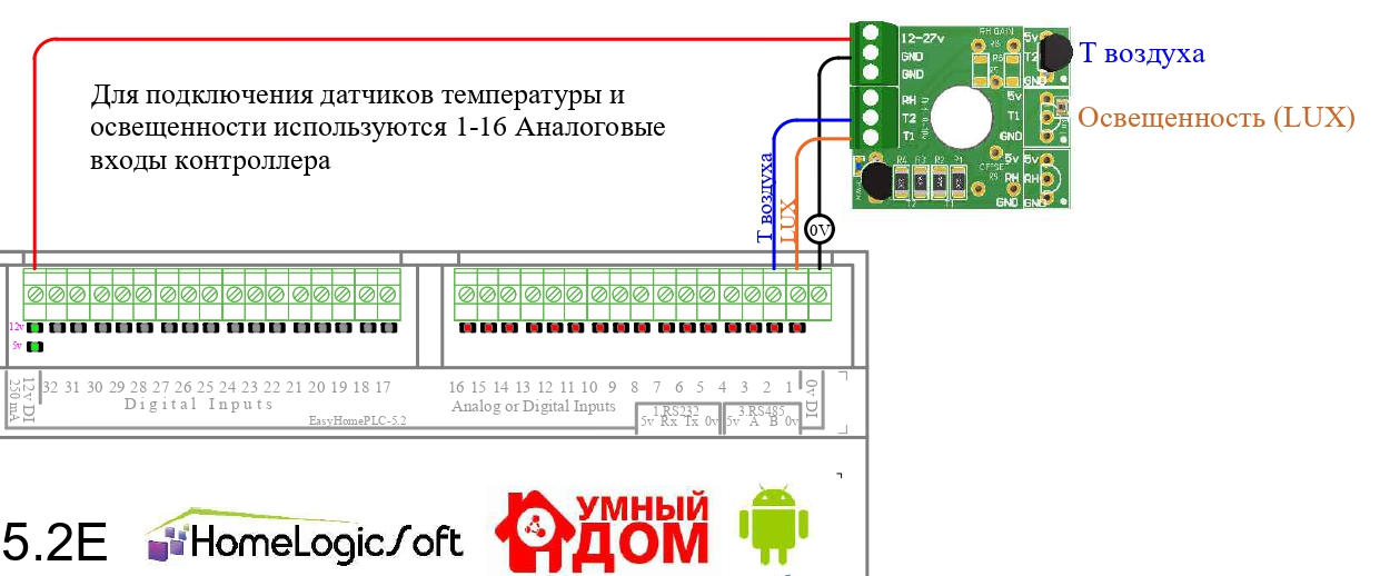 Схема подключения TLux к EasyHomePLC