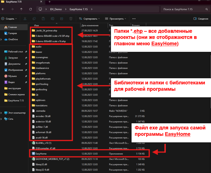 На ОС Windows программа EasyHome представляет собой папку EasyHome7.15 (EasyHome7.9) с рабочим файлом EasyHome.exe и его библиотеками:
