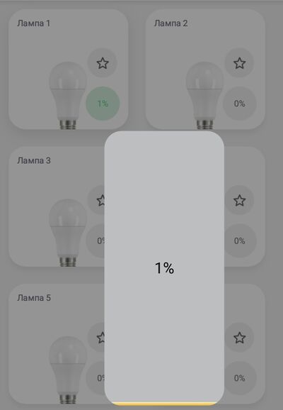 Открываем окно управления лампами и выставляем яркость 1%. Открываем настройки лампы и увеличиваем минимальную яркость на 25, сохраняем. Лампа не начала разгораться, значит повторяем увеличение. На значении 50 лампа начала тускло гореть, сохраняем эти значения и переходим к настройкам остальных ламп.