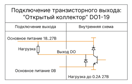 - 1 выход DO1 ( Digital Output) "нижний ключ" с током нагрузки до 2А и напряжением до 36В.