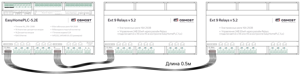 Таким образом для управления контроллером доступно 27 релейных выходов.
