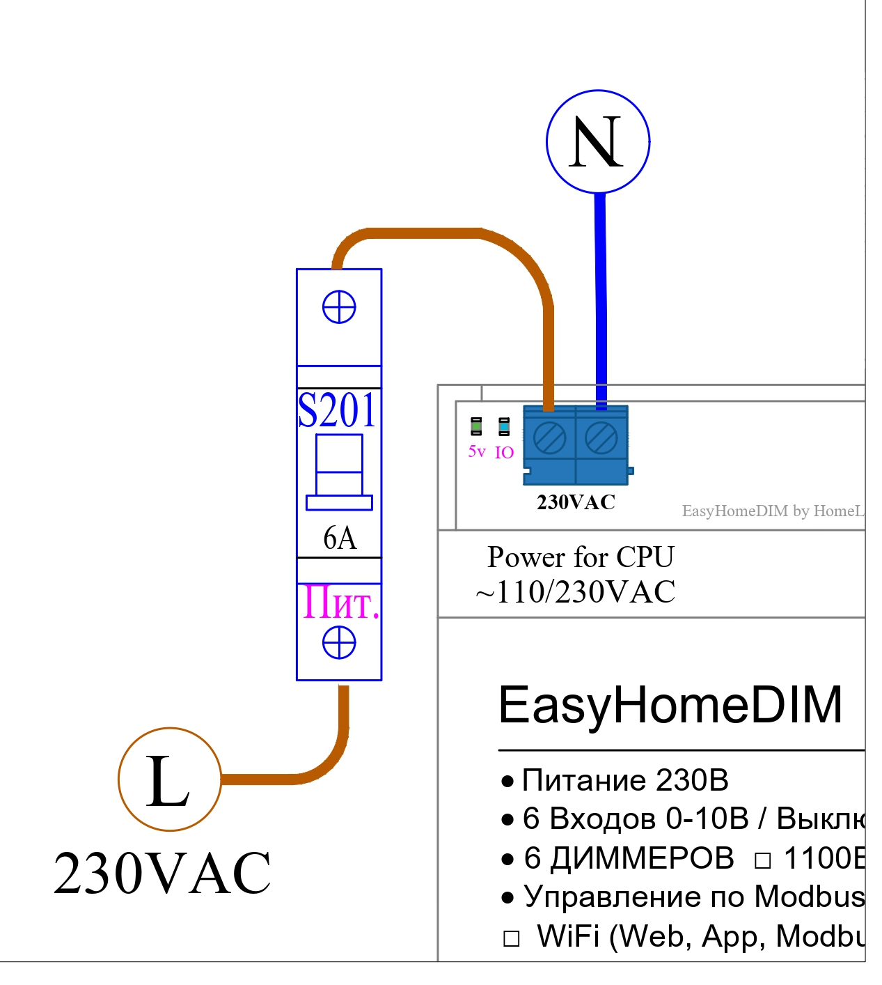 Схема питания EasyHomeDimmer и EasyHomeDimmer-10
