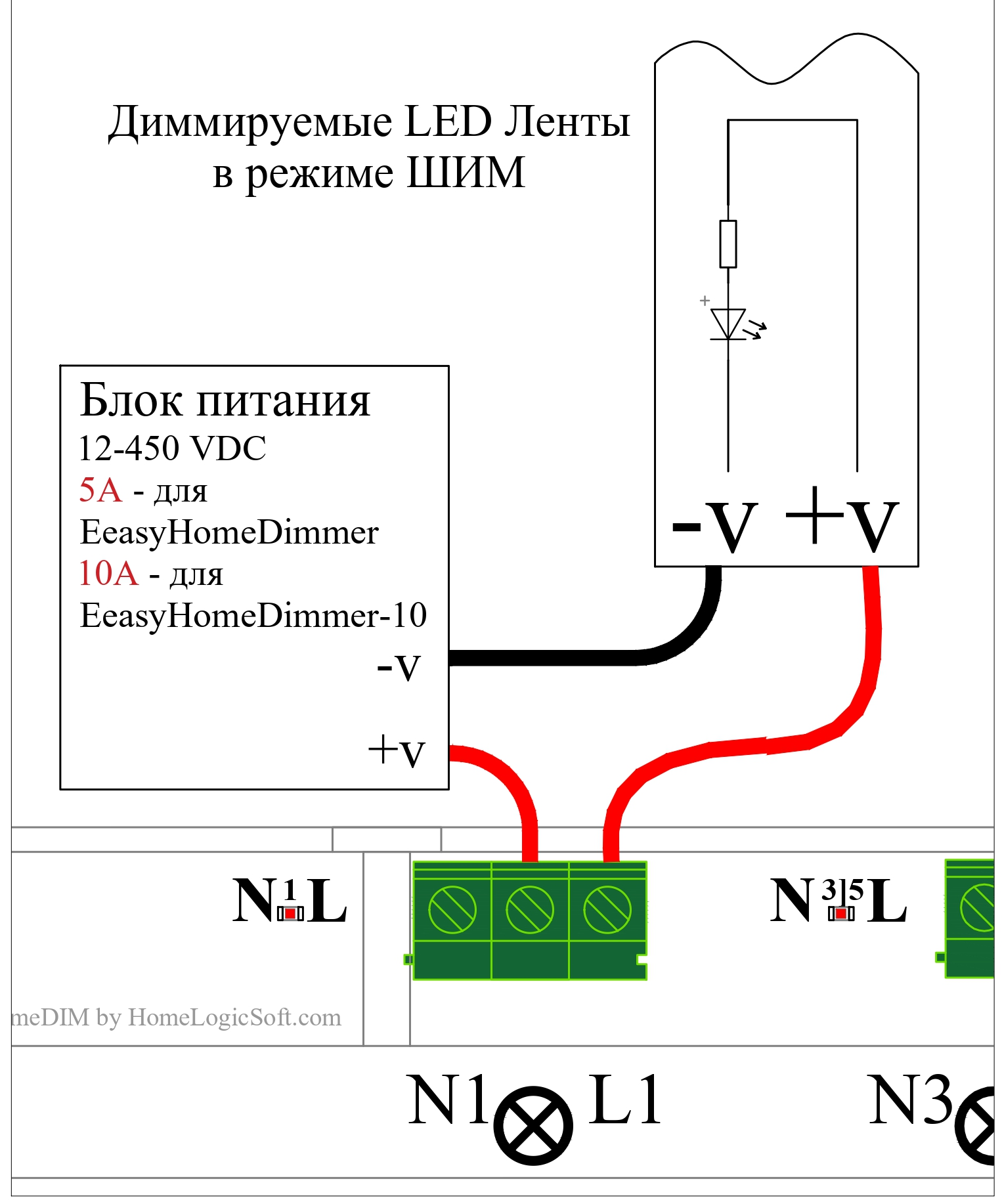 Схема подключения лент для EasyHomeDimmer и EasyHomeDimmer-10