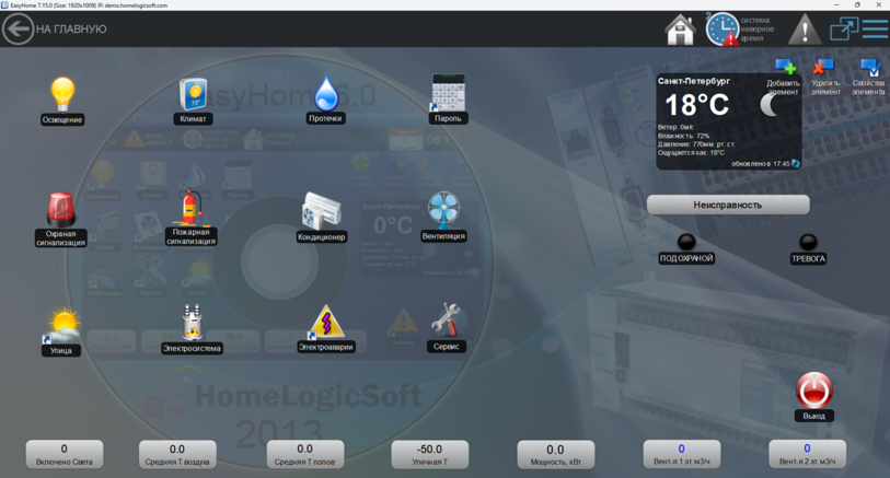 Программа EasyHome является интерфейсом пользователя или инженера и состоит из отдельных страниц визуализации и графических элементов, расположенных на них: