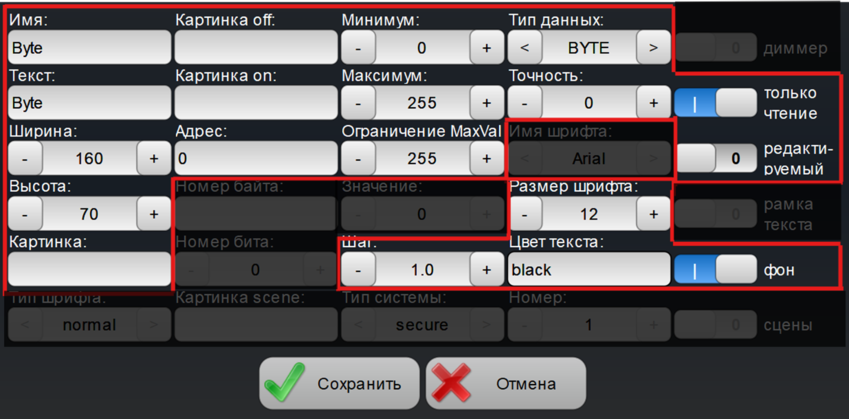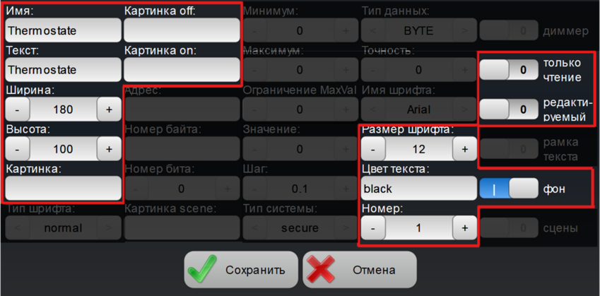 | Редактируемый | Возможность устанавливать значение вкл/выкл |